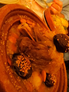 All of that is chocolate! It was INSANE. We got some hot chocolate afterwards too, and that was just simply divine. I got the spanish one, with cloves and cinnamon, and my dad got the spicy one that is the original Aztec recipe. And then, my friends, we had the dinner of a lifetime. Moroccan Food IN PARIS. It was indescribably the most interesting, unique, and genuine meal I've ever had. The first photo of the stuff that's not chocolate is of our appetizers, which were picked vegetables and olives! The next is our appetizer, a flaky fried tuna and egg fritter. Sounds crazy, but it was delicious! And then we had tanij, which was a meat served with a side of couscous. My dad and I got our own, we got a lemony garlic chicken and lamb with dates. But that's not all we got. To go with that and our couscous, we got vegetables, raisins, nuts, and hot sauce. As well as mounds of couscous. And when I say chicken, I mean it was an ENTIRE CHICKEN. There was so much food, we couldn't bare ourselves to eat it all. If I go back to Paris, I am eating there again at least once. They didn't want us to leave (our waiter offered to buy us mint tea, totally on him!). It was the most memorable meal to a most memorable trip!